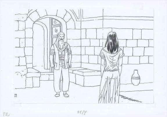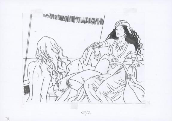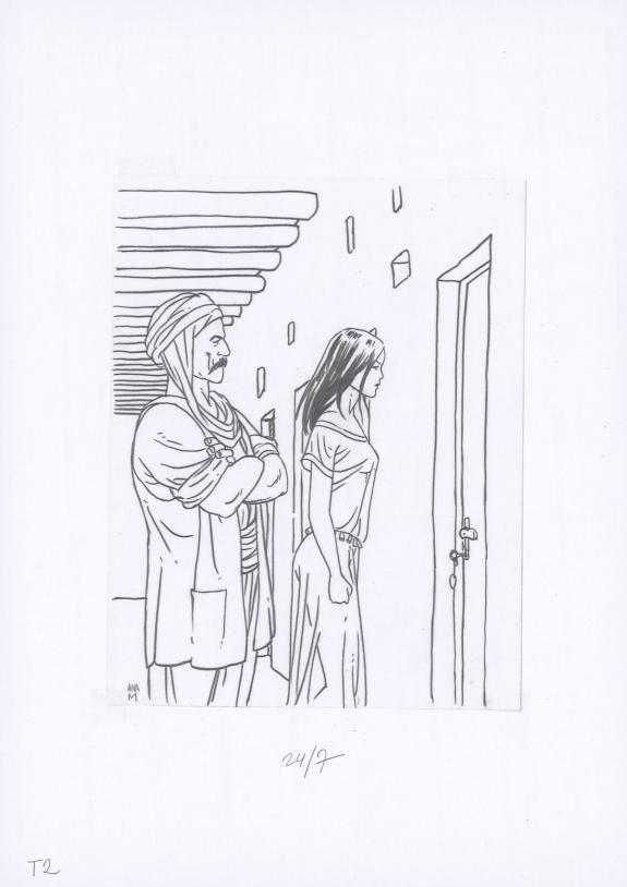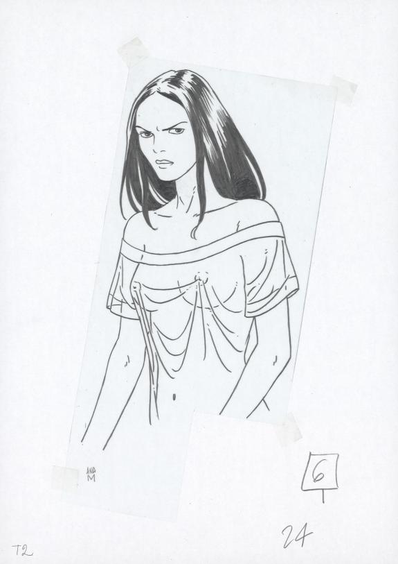 Planche originale n°24 accompagnée de ses 7 étapes préparatoires à la mine de plomb sur calque