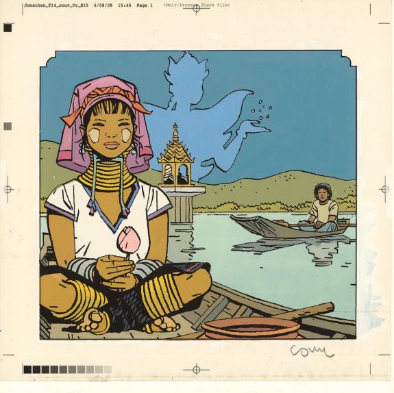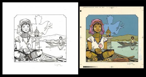 > Catalogue > Cosey > Jonathan > Elle ou dix mille lucioles > Couverture originale accompagnée de sa mise en couleur à la gouache sur papier