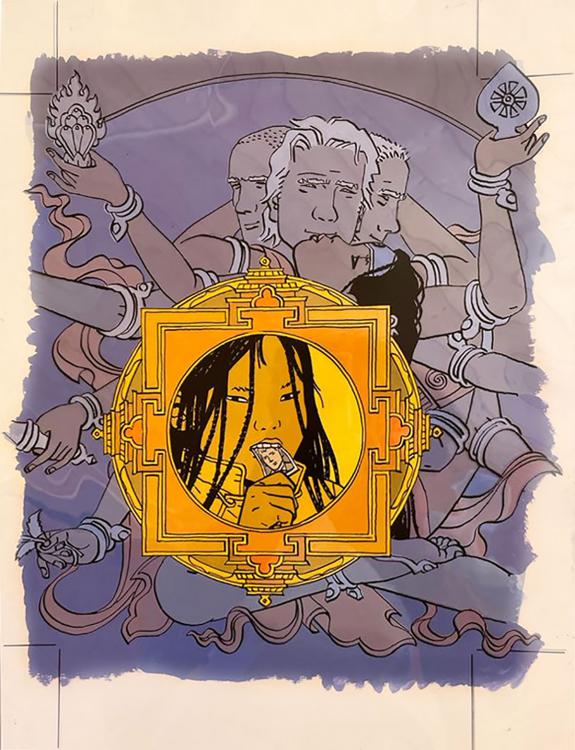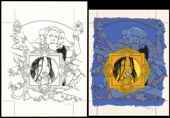 > Catalogue > Cosey > Le Bouddha d'Azur > Intégrale > Couverture originale accompagnée de sa mise en couleur à la gouache