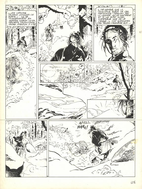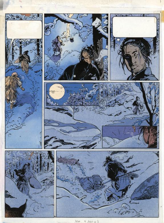 > Catalogue > Marc Michetz > Kogaratsu > Par-delà les cendres > Planche originale n°44 accompagnée de sa mise en couleurs